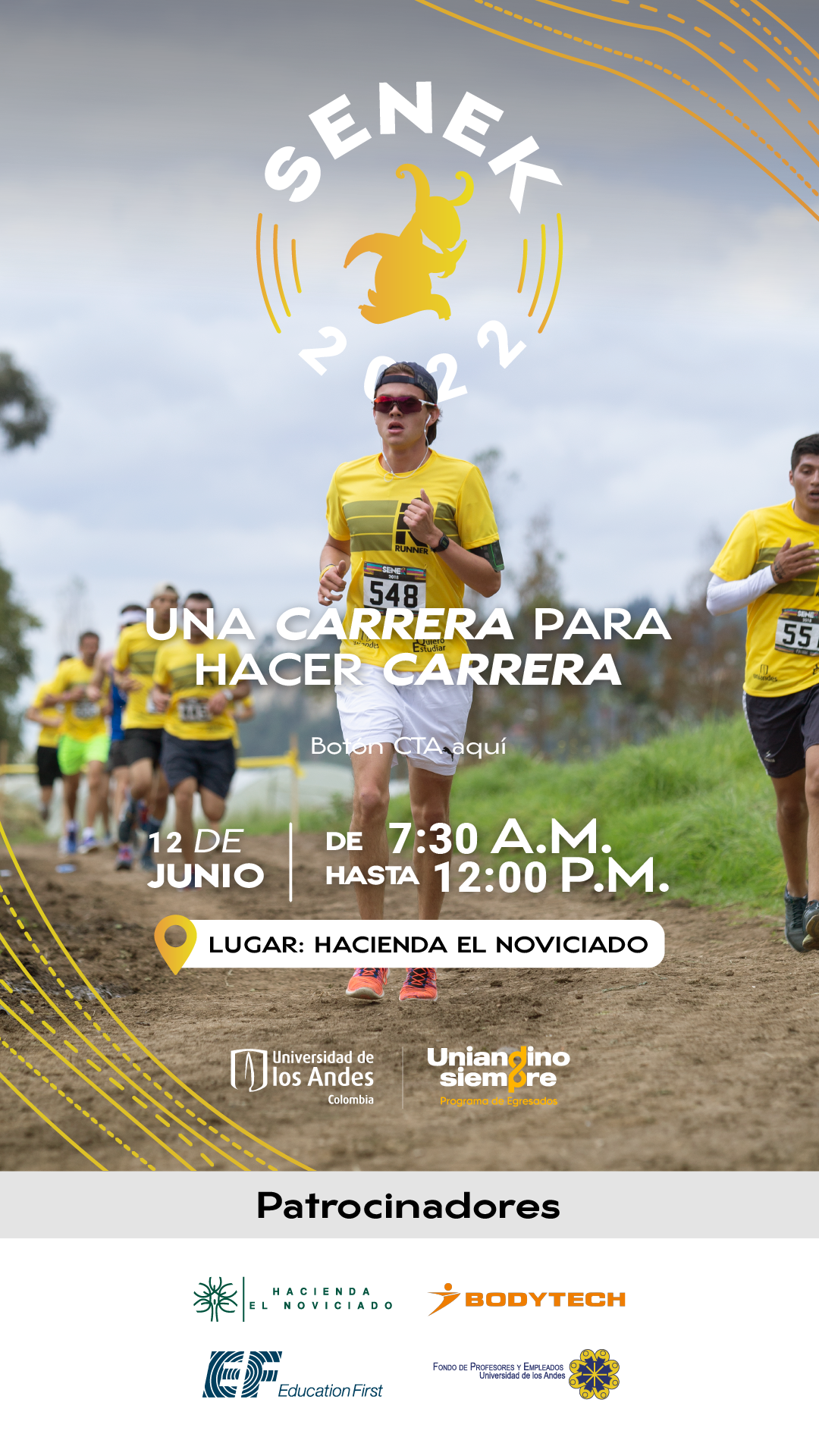 Hacienda El noviciado, Km. 2.8 vía Cota - Chía View mapEn 2022, volvemos a correr en la quinta edición de la carrera SENEK para que sigan creciendo los sueños de más uniandinos.