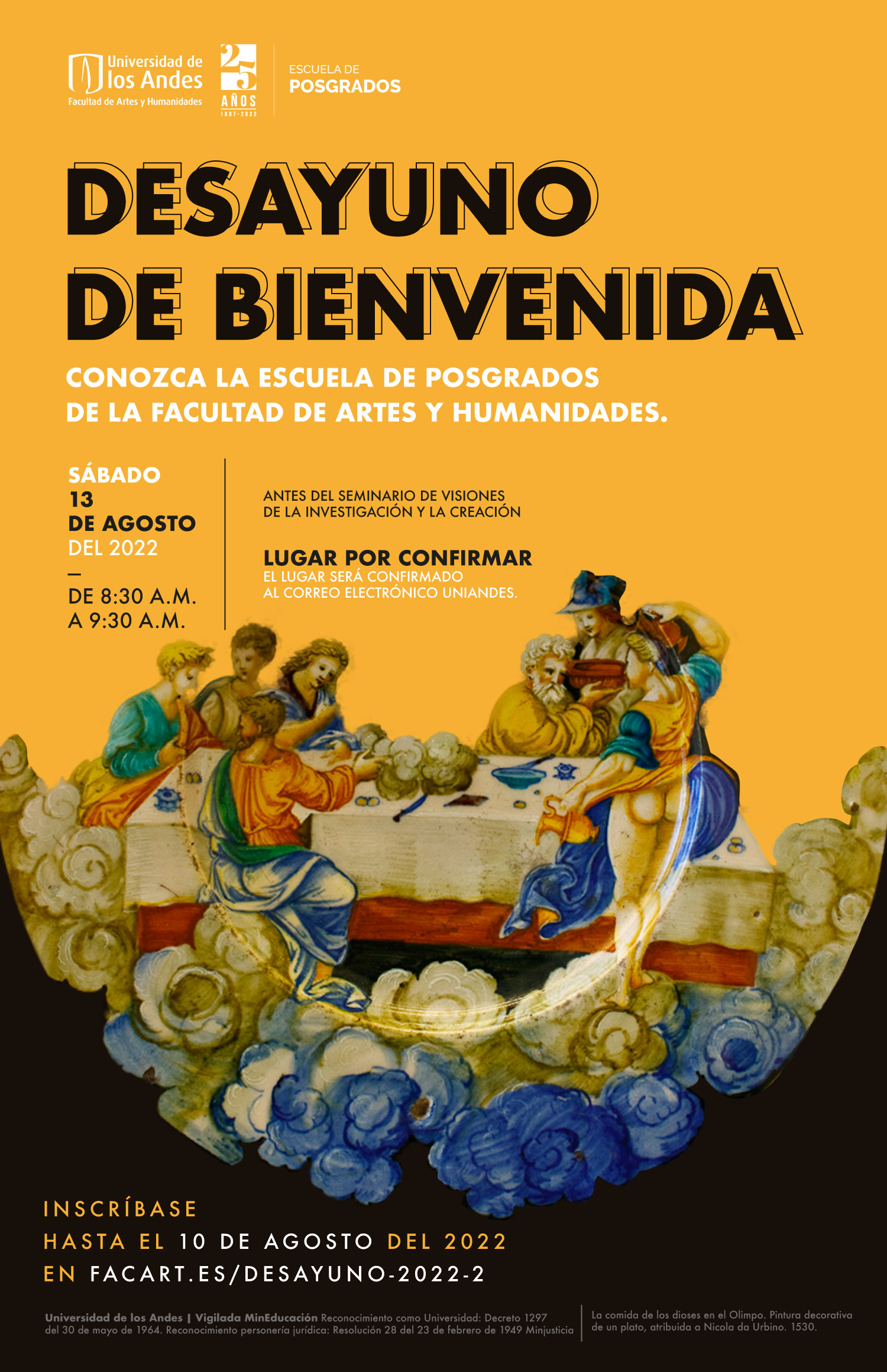 Universidad de los Andes, Bogotá View mapLa Escuela de Posgrados de la Facultad de Artes y Humanidades de la Universidad de los Andes invita a sus nuevos estudiantes a un desayuno de bienvenida.