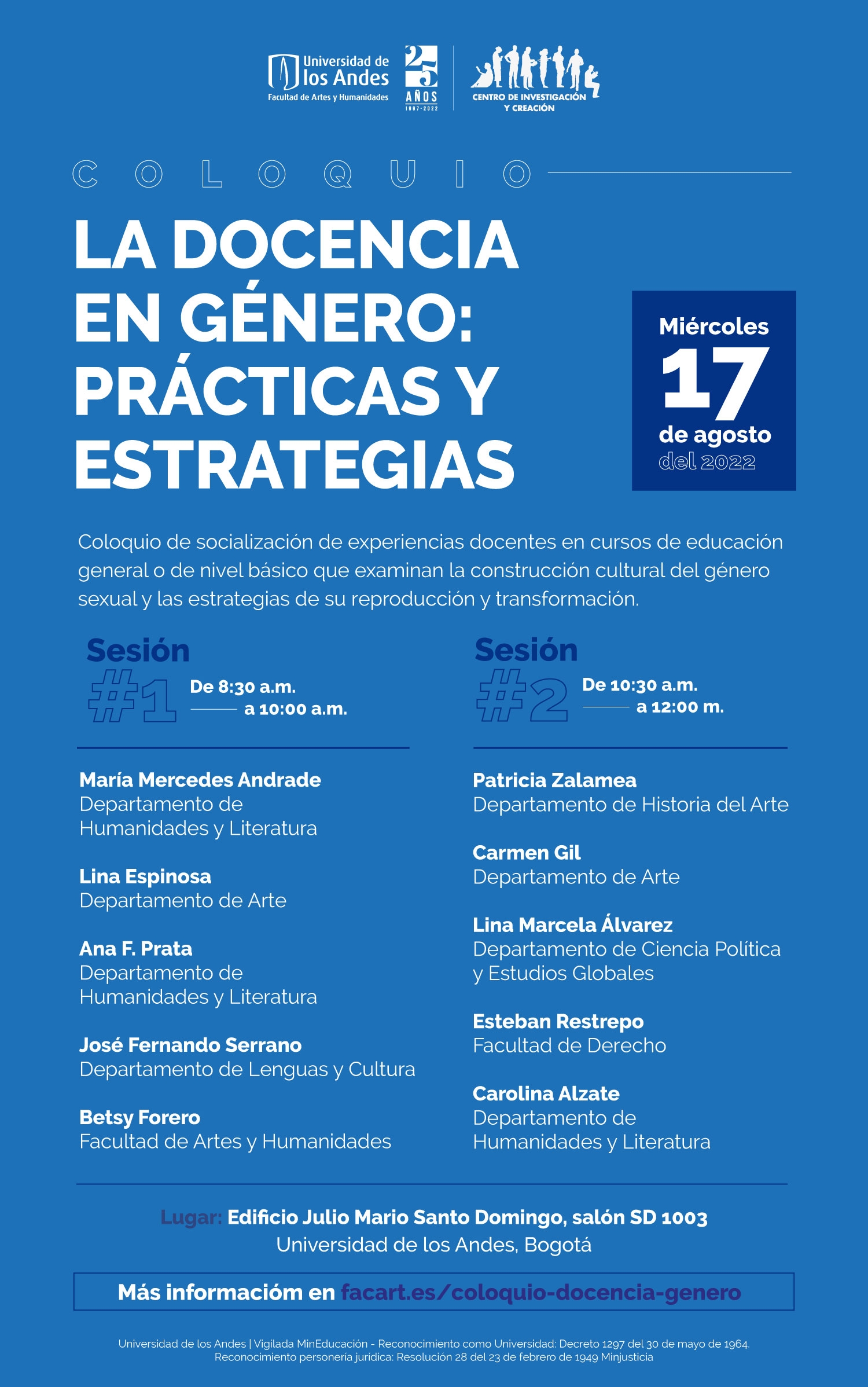 Se llevará a cabo el miércoles 17 de agosto de 2022 en el salón SD 1003 de la Universidad de los Andes en Bogotá.