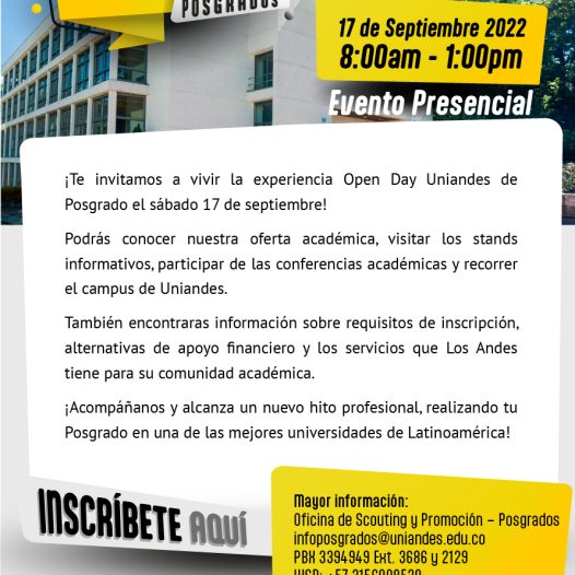 El sábado 17 de septiembre desde las 9:00 a.m. conozca nuestro campus y programas de maestría y doctorado. Inscríbase aquí.