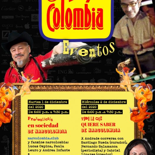 Narcolombia es «líneas de investigación y creación sobre estética y narcotráfico en Colombia» que viajan sobre lo narco como producción cultural; por eso, es moda, música, imágenes, arte, mercancías, objetos y relatos narco.