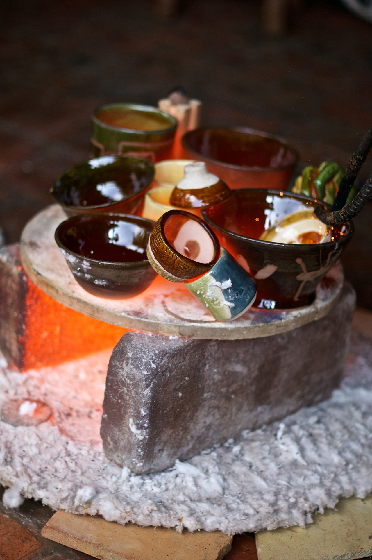 Plazoleta Lleras, Universidad de los Andes View mapLa quema de cerámica en técnica Rakú alude a una actividad de transformación a partir de los elementos de la naturaleza: Tierra, Fuego, Aire, Agua. Esta técnica es de origen Japonés. La descripción del proceso es: las piezas cerámicas quemadas a una temperatura de 1000 grados centígrados en atmósfera oxidante, se sacan incandescentes del horno y se someten a un proceso de ahumado en materia orgánica. Luego se sumergen estas piezas en agua y así se detiene el proceso de quema con un choque térmico. En este momento suceden los cambios físico – químicos que le dan la apariencia característica al Rakú: cerámica negra, esmaltes iridiscentes y craquelados.