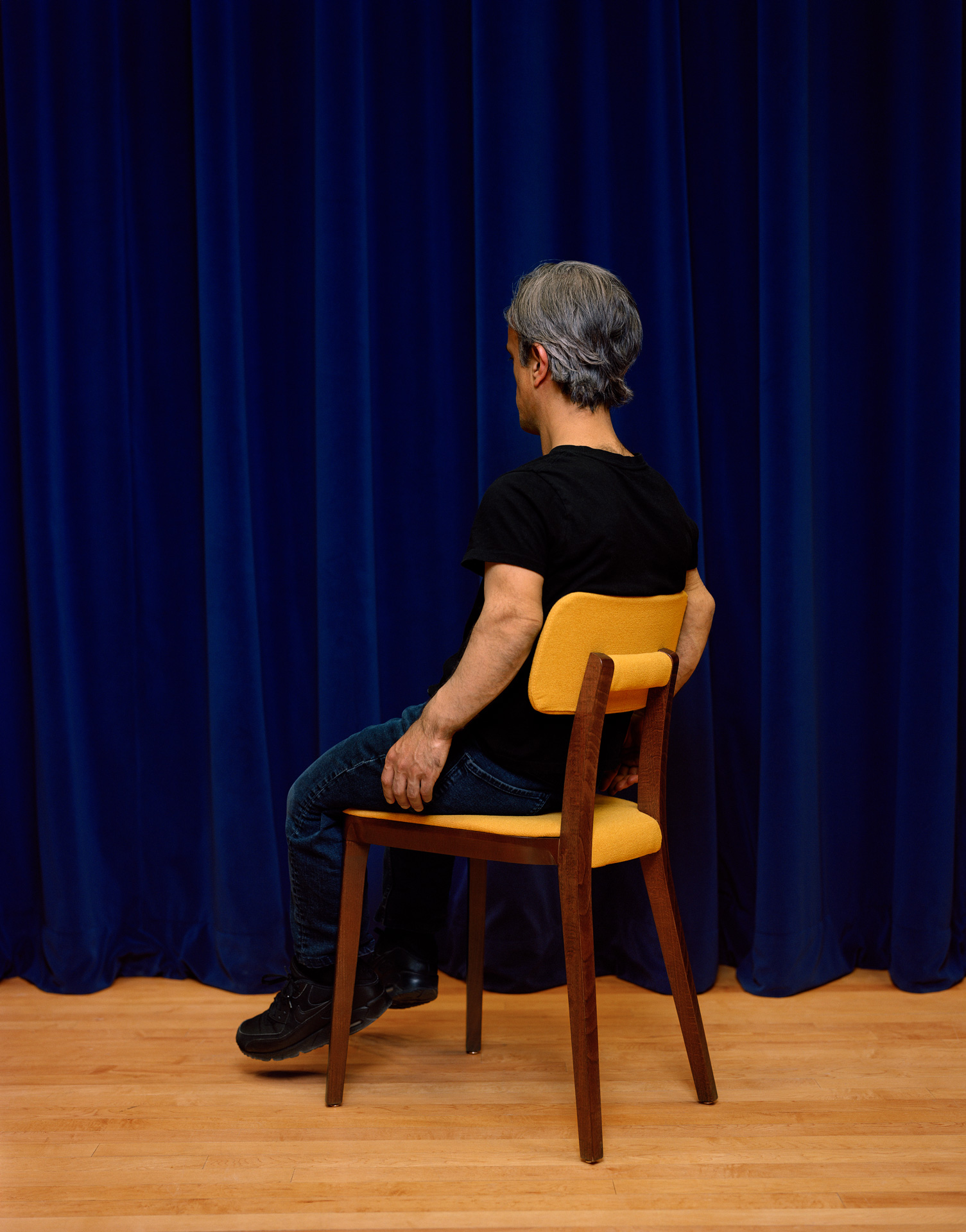Recientemente, he estado estudiando la idea de la perspectiva y su relación con la escala de mi cuerpo y el mundo que habito. Cuando se investiga sobre el cuerpo a través de imágenes fotográficas es imposible ignorar la escala y su relación con la arquitectura y los objetos utilitarios. En mi serie más reciente titulada Tipología de sillas decidí hacer autorretratos en diferentes sillas encontradas en el entorno institucional.